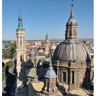 Visite de Saragosse, capitale de l'Aragon. Découverte du centre historique avec la basilique du Pilar, joyau baroque, qui se dresse à l'endroit où Saint Jacques aurait vu la Vierge Marie sur un pilier de marbre en l'an 40. Visite de la cathédrale de la Seo au styles architecturaux, du roman au baroque, en passant par le mudéjar. Déjeuner tapas au restaurant à Saragosse. Continuation de la visite avec passage par le parc José Antonio Labordeta et la visite du palais musulman de l'Aljaferia, considéré comme le plus bel édifice maure en dehors de l'Andalousie.